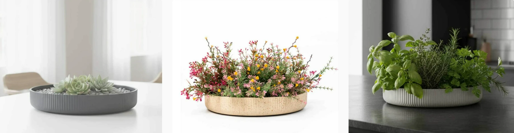 Tieto misky s rozmermi 5 x 30 centimetrov (výška/priemer) sú ideálne pre výsadbu malých rastlín aj pre kreatívne zdobené aranžmány. Sú tiež obľúbeným a atraktívnym miestom na odloženie kľúčov alebo podobných predmetov vo vstupnej hale.