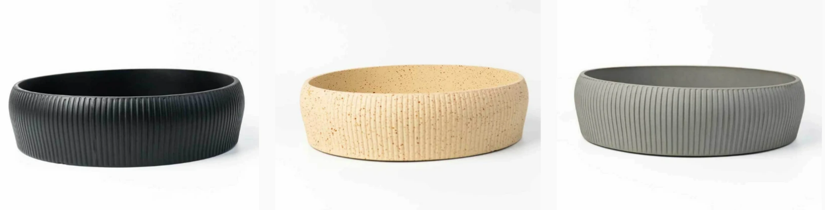 Rebrovaná textúra (reliéf drážok) je jasne viditeľná nielen pri najsvetlejšej farbe, ale je okamžite viditeľná aj pri mise ERYNA v antracitovej a tmavo šedej farbe, ako ukazujú nasledujúce obrázky mís bez rastlín:
