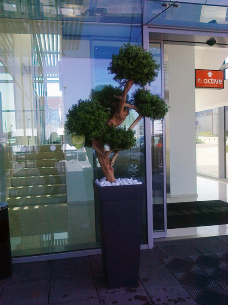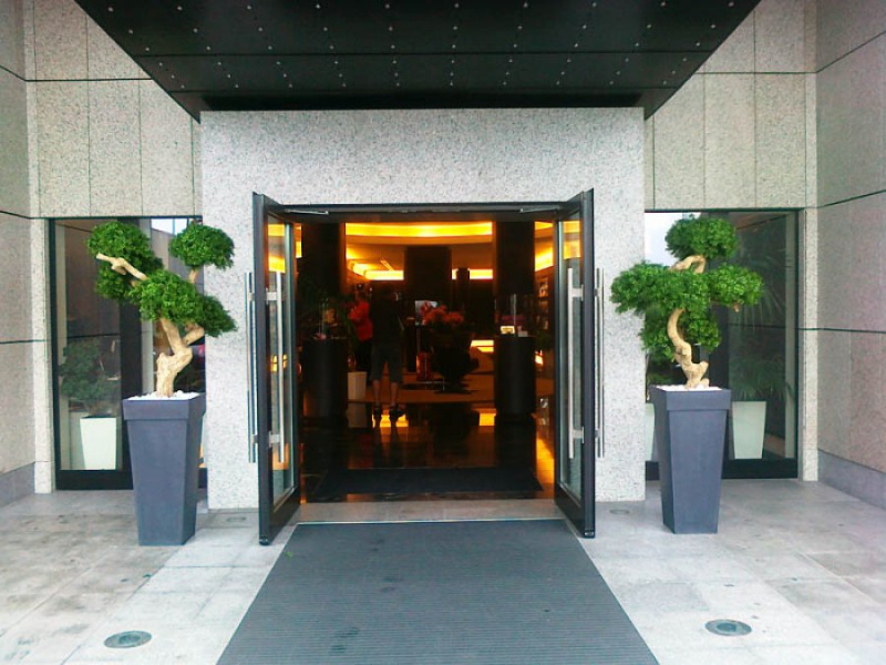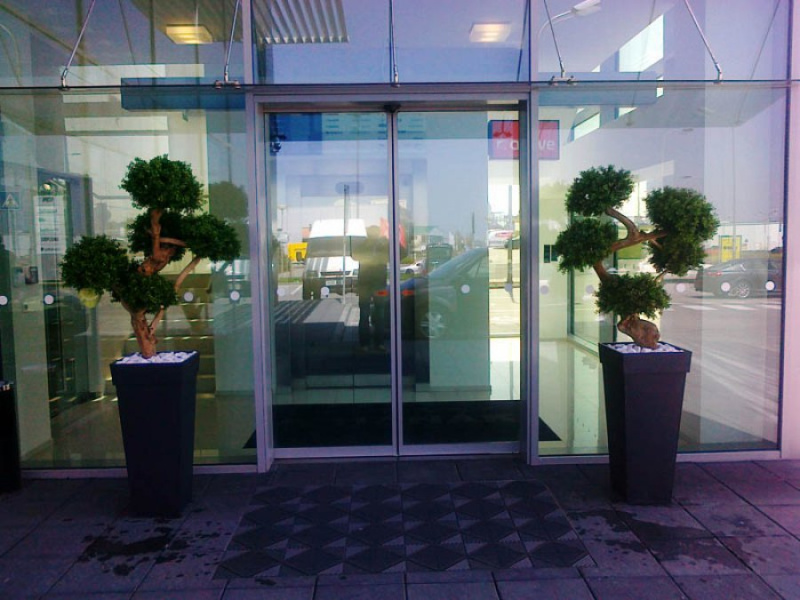 Naša realizácia setu dvoch pozinkových kvetináčov vysokých 90 cm pri vchode do VIP salónu na Ruzynskom letisku Václava Havla. Na tejto akcii sme spolupracovali s firmou Florum, ktorá dodávala umelé kvety Tea Leaf Crown.