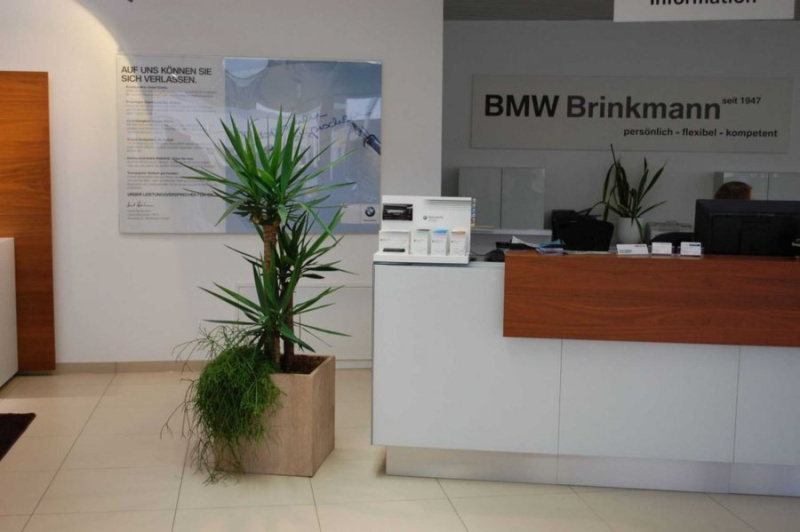 Celkový dojem z priestoru, nech už sa pozeráte odkiaľkoľvek, je jednotný a vyvoláva veľmi pozitívny dojem. Kvetináče, aj napriek svojej výške a hmotnosti, do veľkého priestoru zapadnú a podporia dojem elegancie a vycibreného vkusu značky BMW.