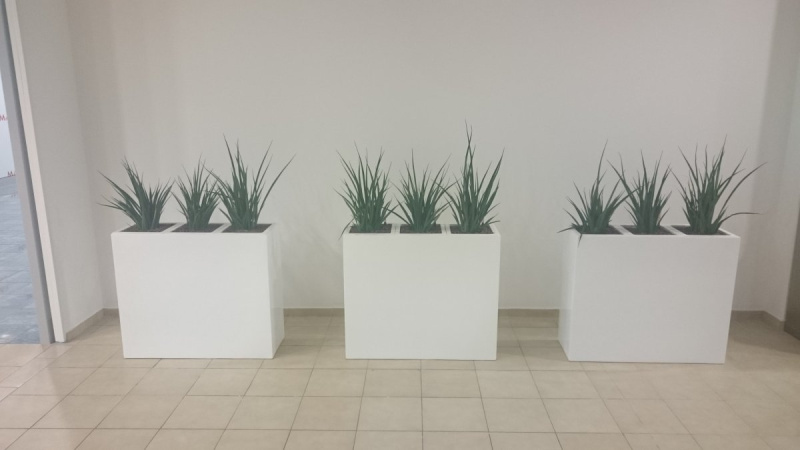 Sklolaminátové kvetináče v obchodnom centre