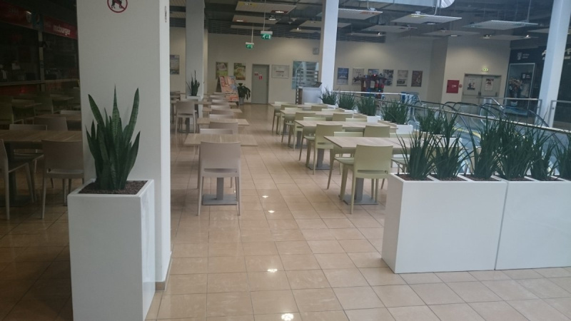 Do obchodného centra v Nitre sme dodávali 2 druhy našich kvetináčov. V interiéri centra boli použité naše obľúbené kvetináče ELEMENTO vo farbe biely lesk ako deliace prvky a kvetináče BLOCK 80 tiež vo farbe biely lesk. Zeleň do rozľahlých priestorov obchodného centra neodmysliteľne patrí a krásne oživí interiér.