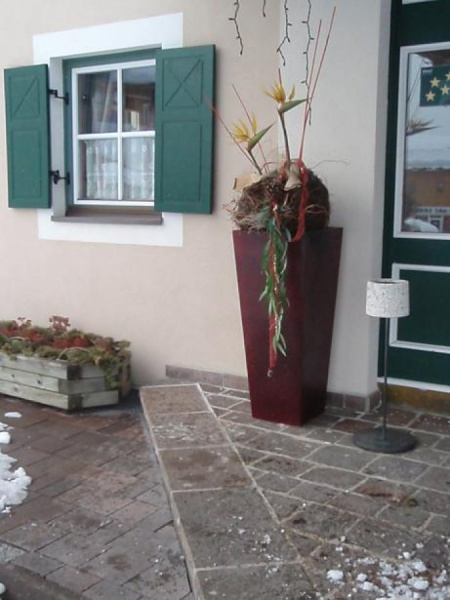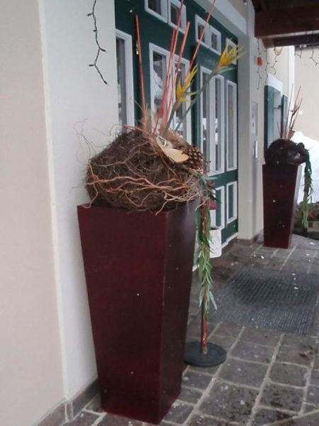 Majitelia hotela umiestnili tieto dva pozinkové kvetináče classic design do vonkajšieho priestoru pred vstup do hotela. Celkový pohľad pôsobí veľmi útulne.