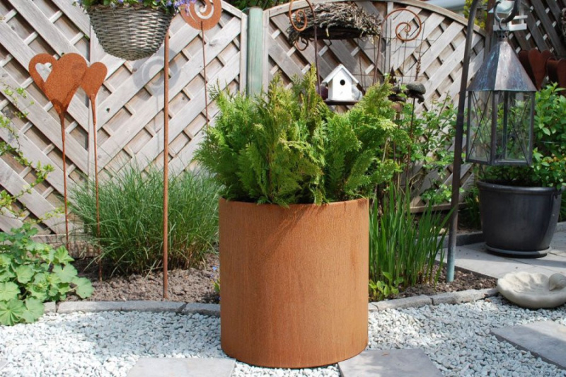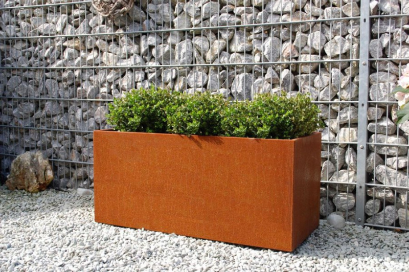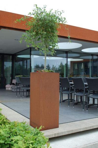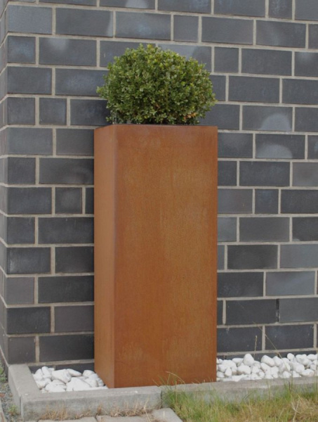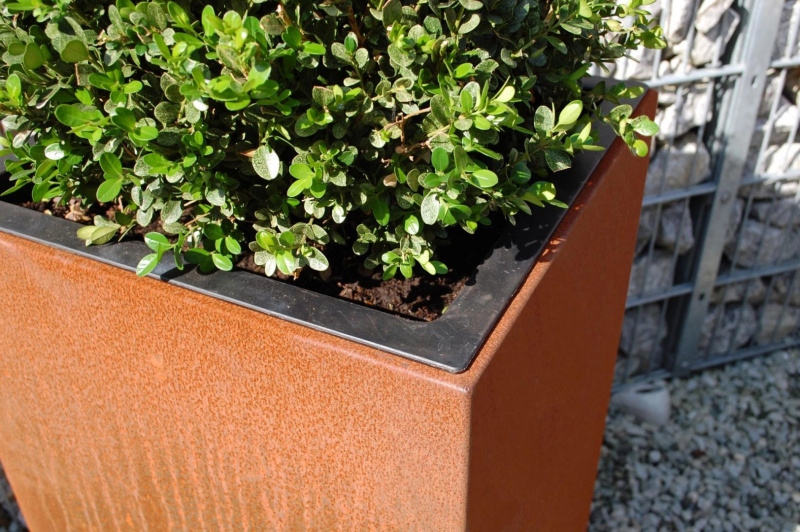 Výnimočné sú kvetináče z cortenovej ocele, ktoré postupom času menia svoju farbu a textúru. Vplyvom dažďa a slnka sa farba mení z načervenalej na hnedú. Každý kus je jedinečný. S touto voľbou dodáte svojej záhrade moderný a exkluzívny vzhľad. Aby sa zabránilo ďalšej korózii, je kvetináč opatrený bariérovou vrstvou.